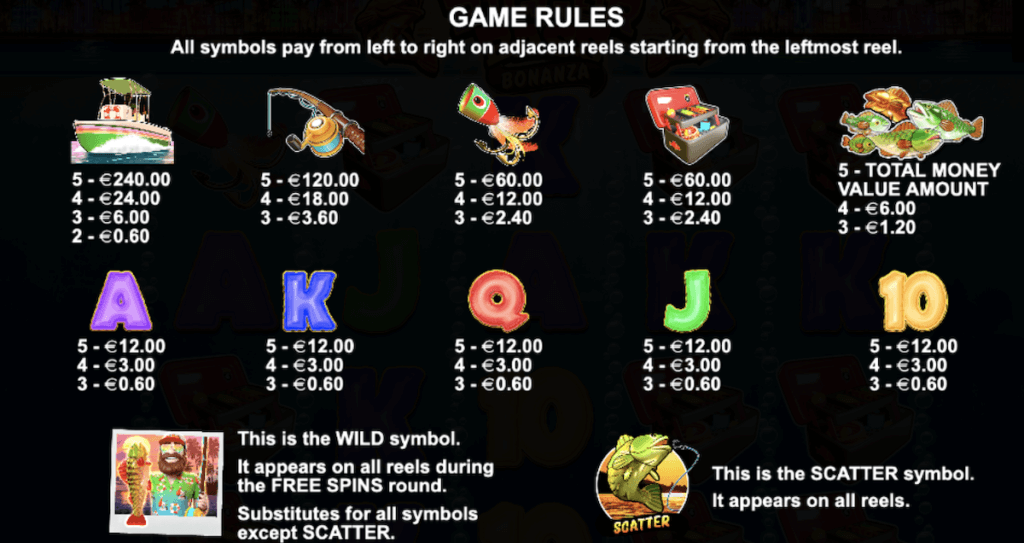 Cash symbols + a “fisherman” collects the win.